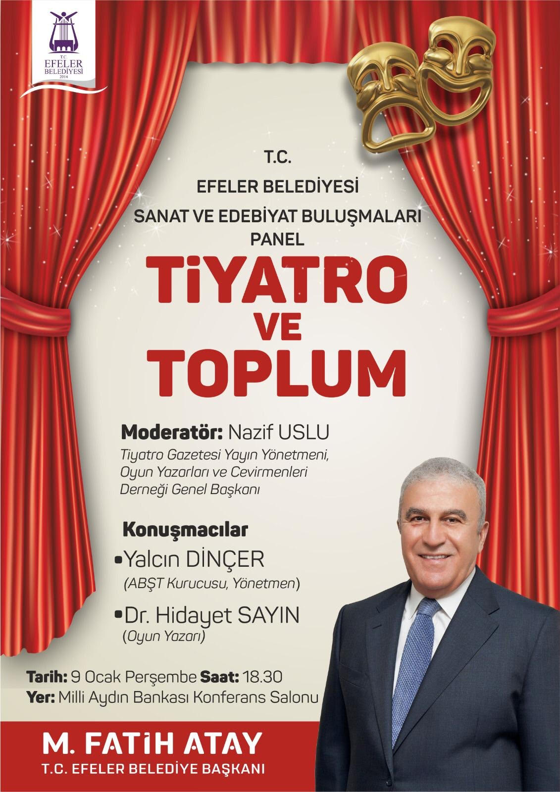 Efeler Belediyesi Sanat ve Edebiyat Buluşmaları etkinlikleri kapsamında, 9 Ocak Perşembe günü, “Tiyatro ve Toplum” başlıklı bir panel düzenlenecek.